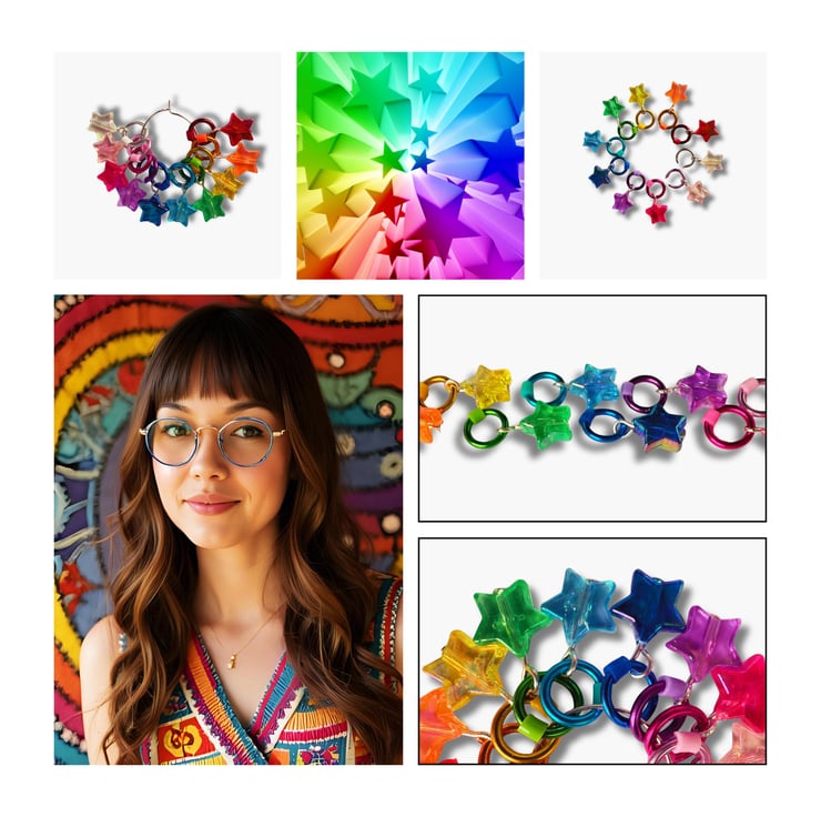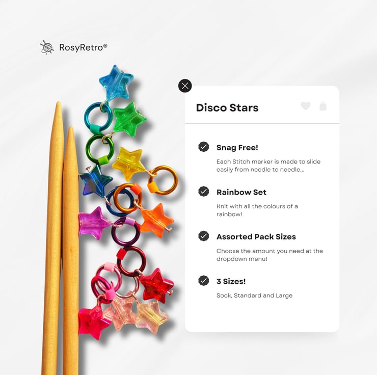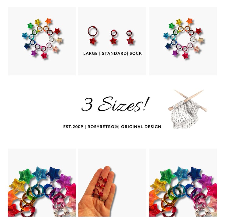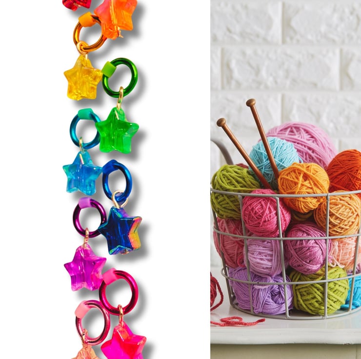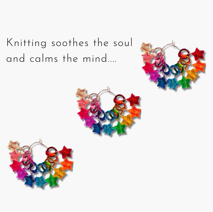 Brightly coloured Rainbow Star Stitch markers for knitting!