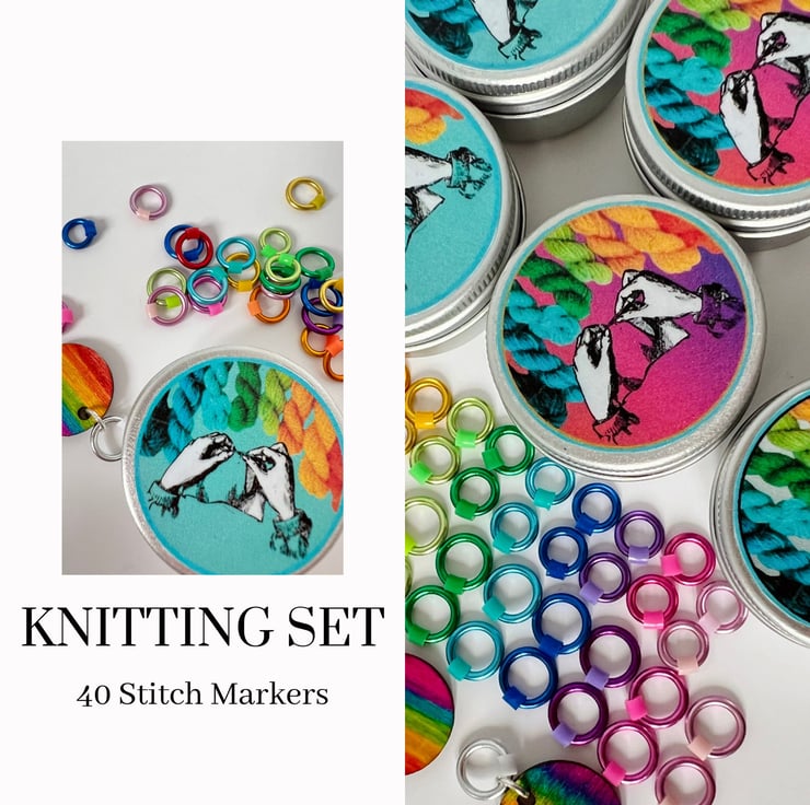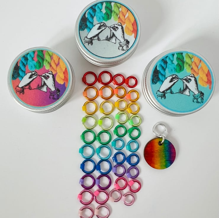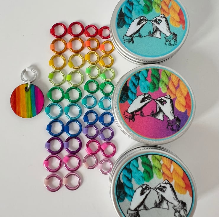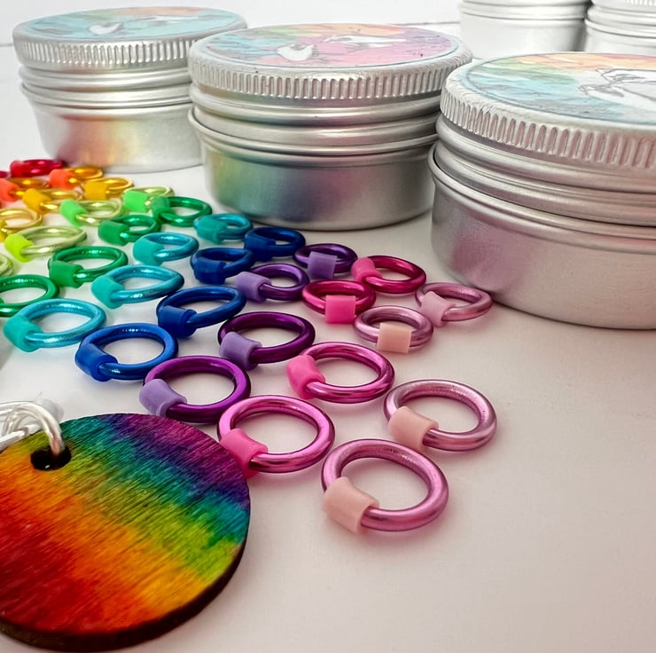 - Contains 40 RAINBOW Stitch Markers and one Unique 'Leader' Marker (for the beginning of the round!)