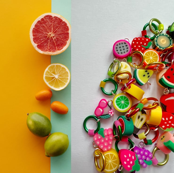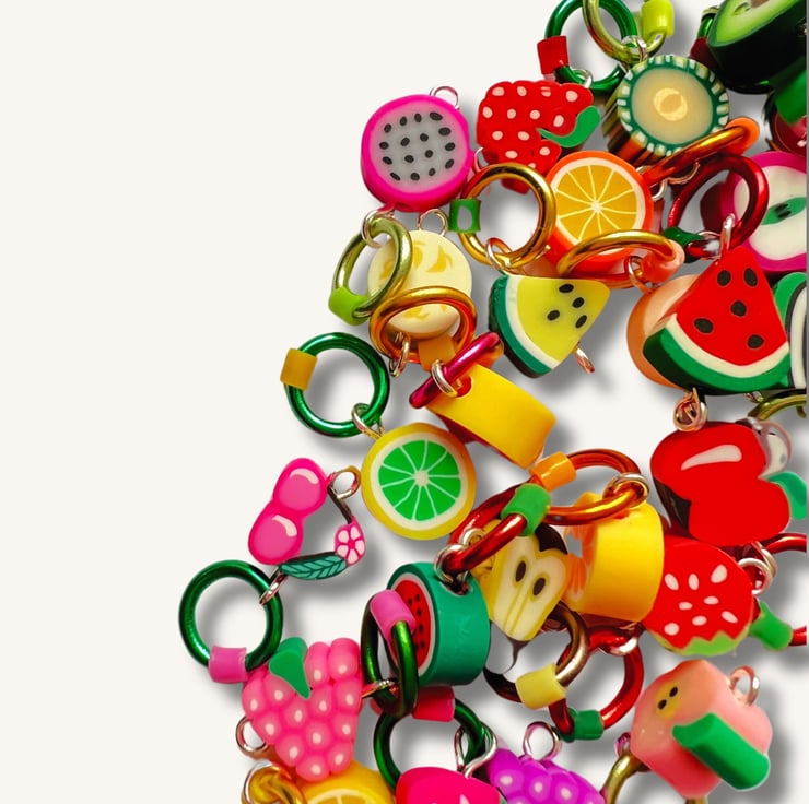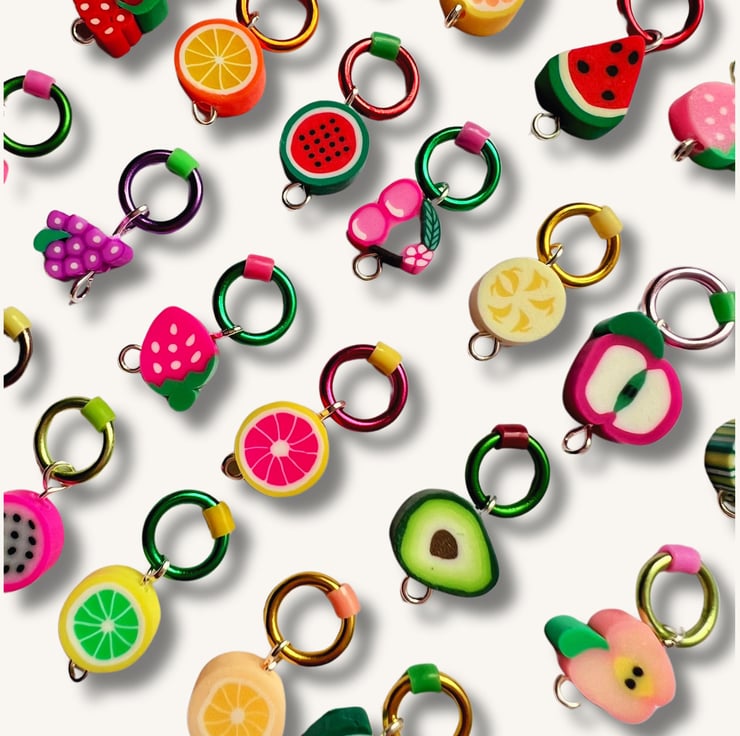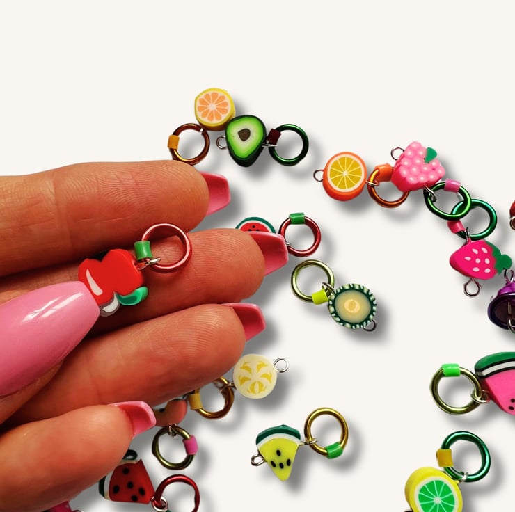 Super cute yummy fruit salad stitch markers for knitting in 3 sizes! (just don't eat them!)