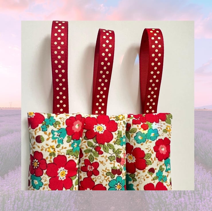 Red floral Lavender sachets made fresh to order!