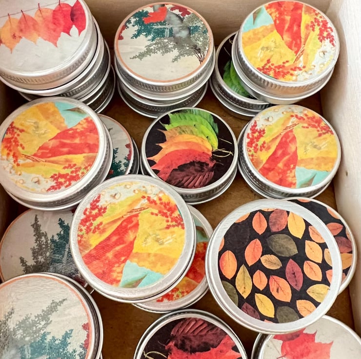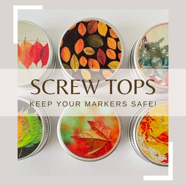 I love Autumn! The stunning colours really inspire me as a creative person, so I designed these tins to reflect the beauty and warmth of the Season.....Each tin has a Screw Top Lid so they can keep your markers safe inside your project bag! Each tin is carefully lacquered by hand and made to last!