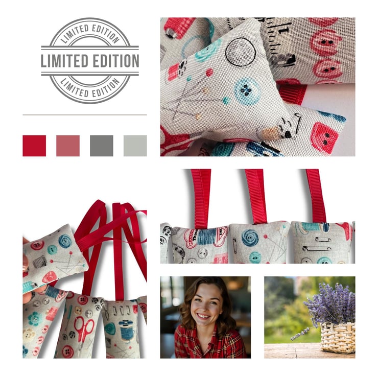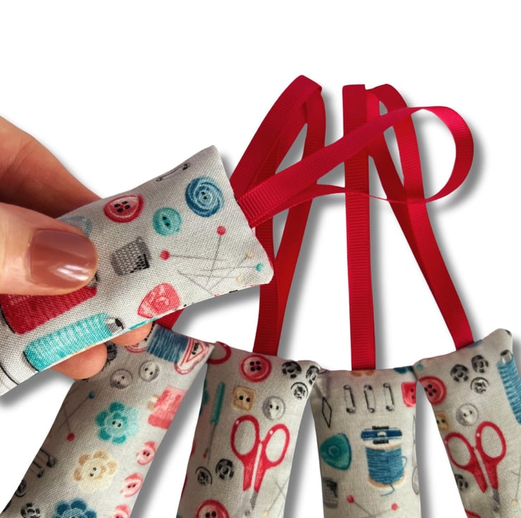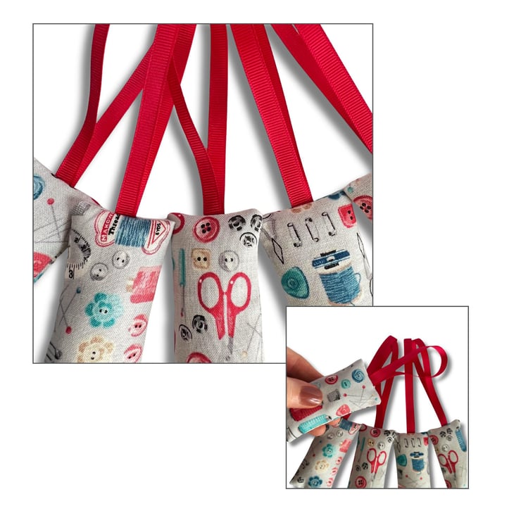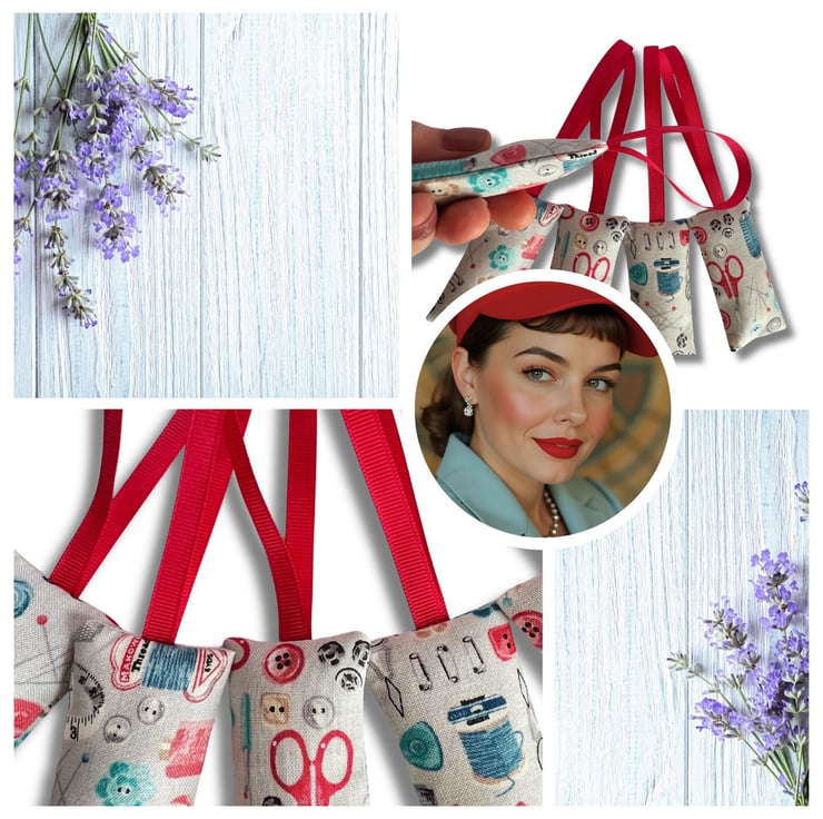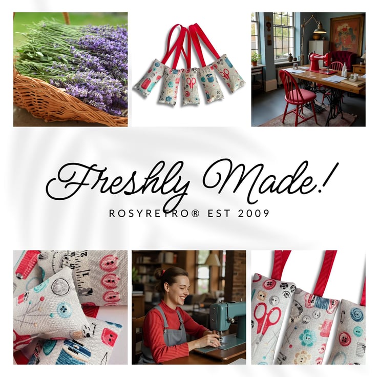 Hand finished and made fresh to order....perfect for lovers of vintage sewing....these look so pretty nestled in a fabric stash....wool stash...even hanging from a hook in your craft room! Each bag is small with a glorious lavender scent....