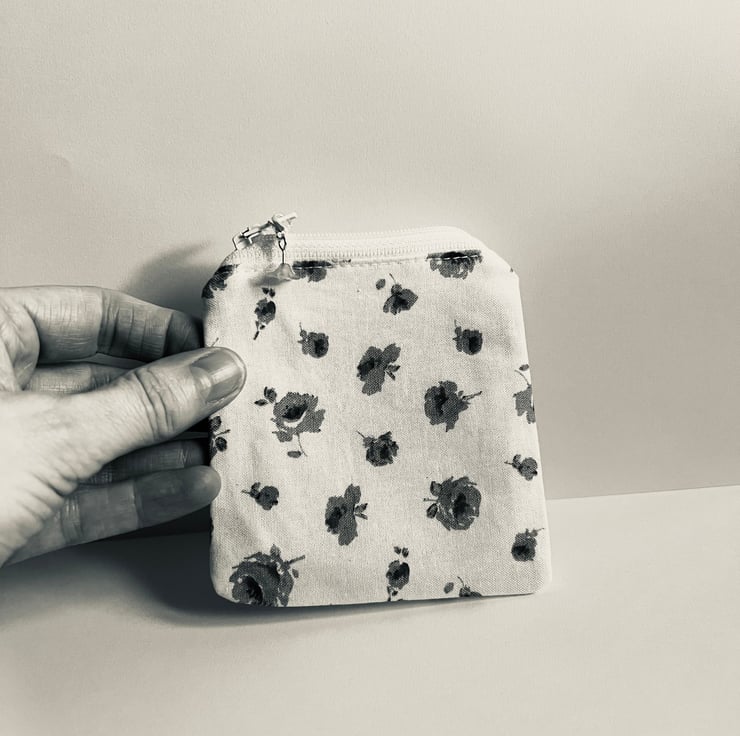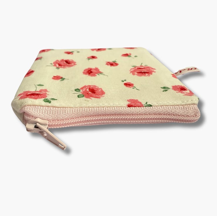 Gorgeous ditsy rose print mini purse featuring the classic Liberty of London Mary Rose pink fabric. Perfect for coins...stitch markers...lip balm...tape measure...buttons....