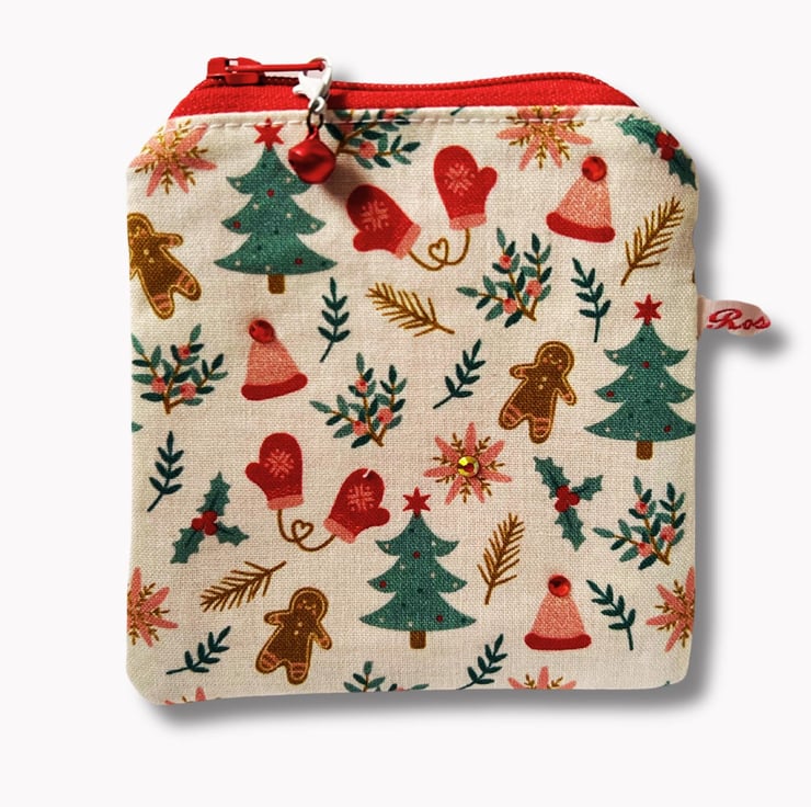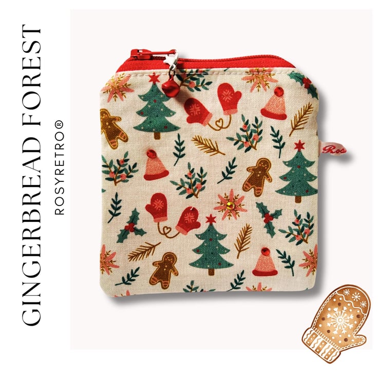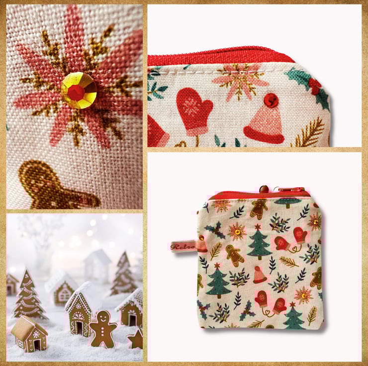 Sparkles...festive warmth....celebrate the festive season with this mini storage purse ...adorable Gingerbread themed Cotton fabric....perfect for stitch markers...tape measure...mini scissors....lip balm....