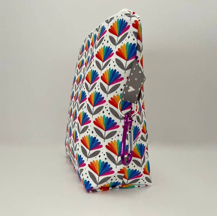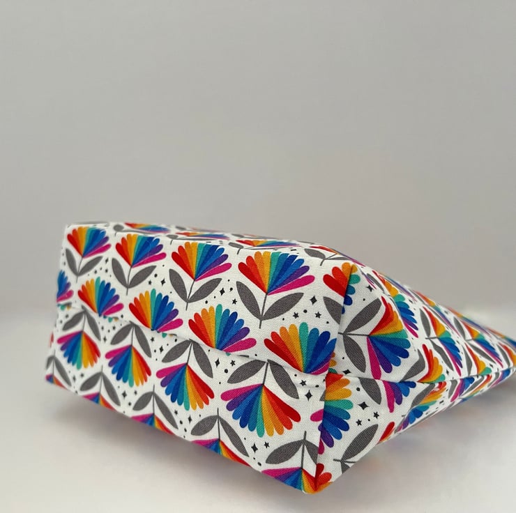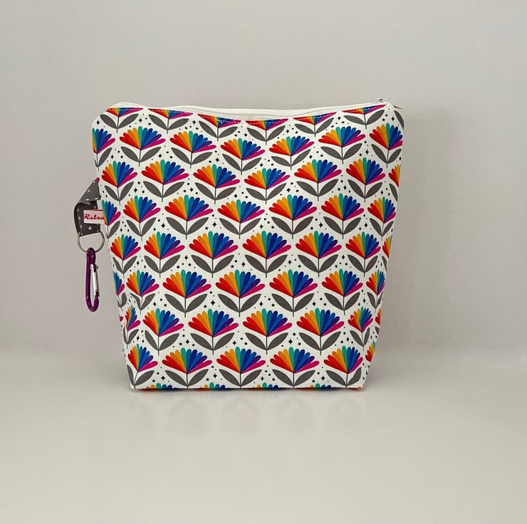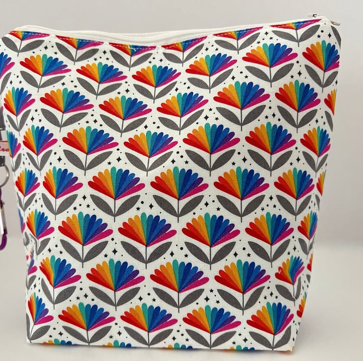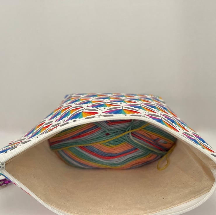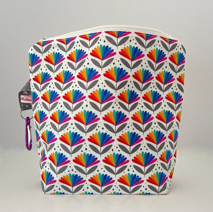 Colourful floral rainbow project craft bag for knitting and crochet projects!
