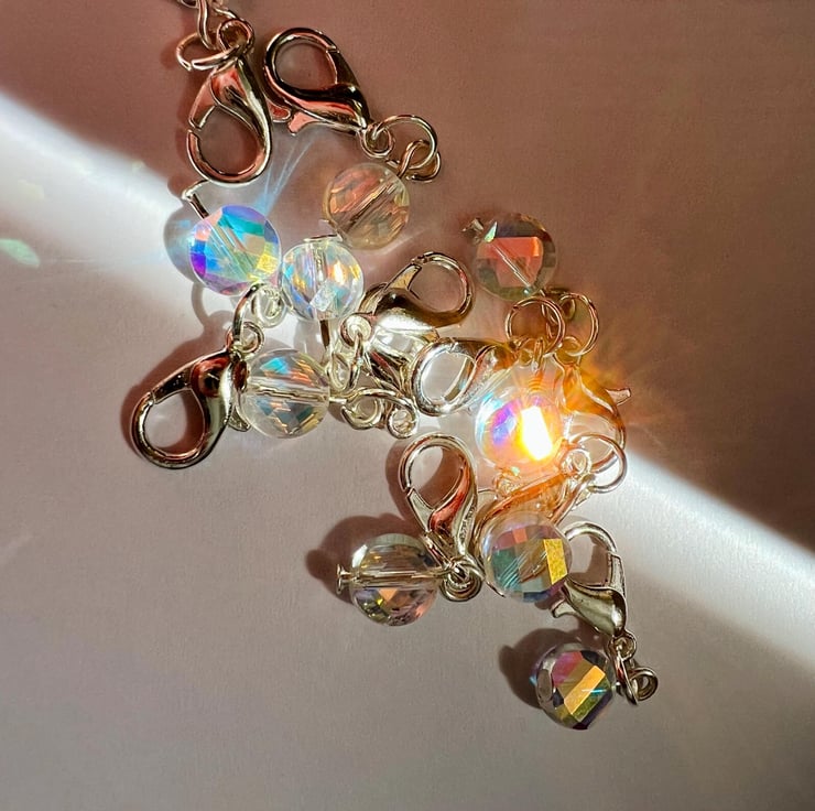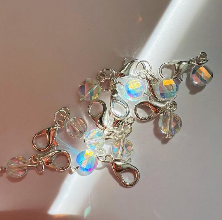These exquisite Crystal stitch markers are inspired by the splendour of the Palace Versailles in miniature form....jewel-toned crystals that sparkle in the sunlight.... bring royal French elegance to your knitting projects while catching light like the palace's famed Hall of Mirrors.