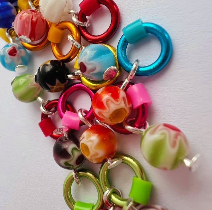 Inspired by the amazing neon colours of Tokyo at night....these colourful stitch markers add a touch of colour to mark your projects (and they are totally snag free too! )