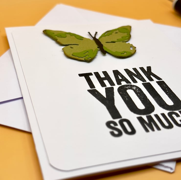 Handmade Thank You Card, Green Butterfly “Thank You So Much” Nature Inspired, A2