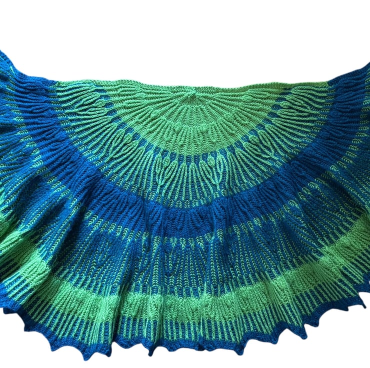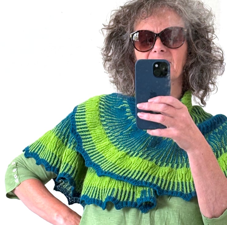 Dive into texture and movement with the Sea Kelp Shawl, a dramatic, ocean-inspired wrap that blends fluid shapes and playful stitchwork. Worked from a neat garter stitch tab, the shawl begins as a soft semi-circle before flowing gracefully into a crescent shape. Stripes alternate between single-colour and two-colour brioche, each section rippling with waves, dotted with bobbles, and finished with whimsical frills reminiscent of drifting seaweed. The journey ends in a beautiful brioche picot edge – the perfect flourish for a statement piece. Whether you choose ocean-hued yarns or a bold contrast palette, the Sea Kelp Shawl is a joy to knit and a show-stopping accessory to wear.