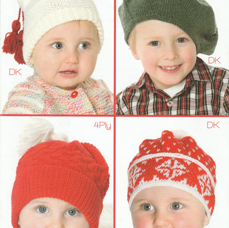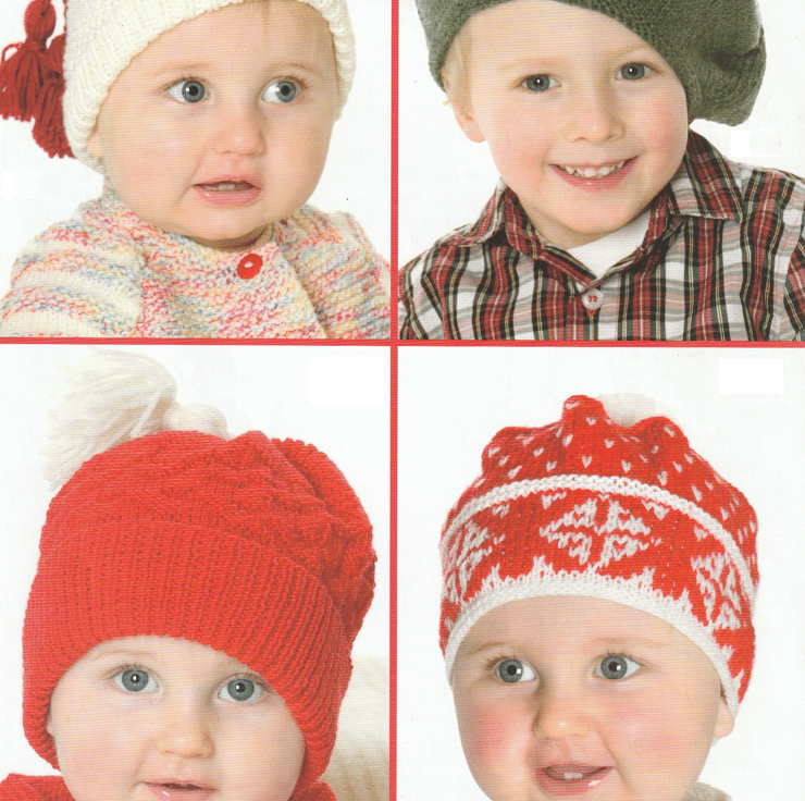 This hand knit PATTERN is for a set of baby hats. The hats are knitted in double knitting yarn using 3.25 mm and 4 mm knitting needles.