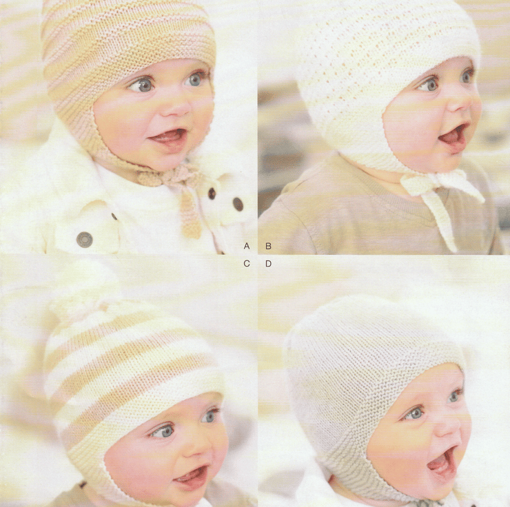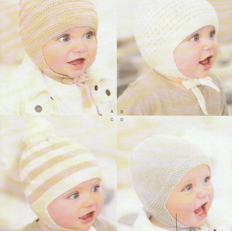 This hand knit PATTERN is for a set of baby hats. The hats are knitted in 4 ply yarn using 2.75 mm and 3.25 mm knitting needles.