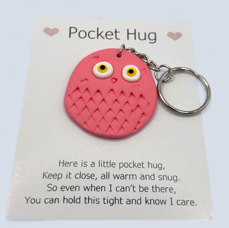 Pink Owl Pocket Hug Keychain or Bag Charm