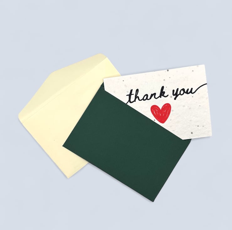 Set of 8 Plantable Wildflower Seed Thank You Cards with Green & Cream Envelopes