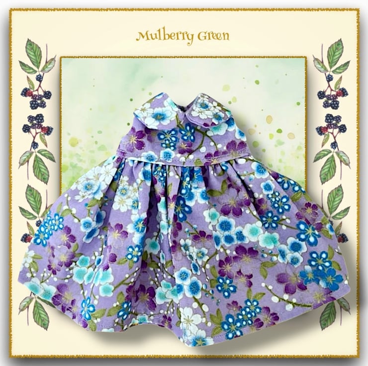 A beautiful little dress in a floral print, to fit the Mulberry Green characters. The dress is made from best quality cotton and has a Peter Pan collar and a lined bodice.