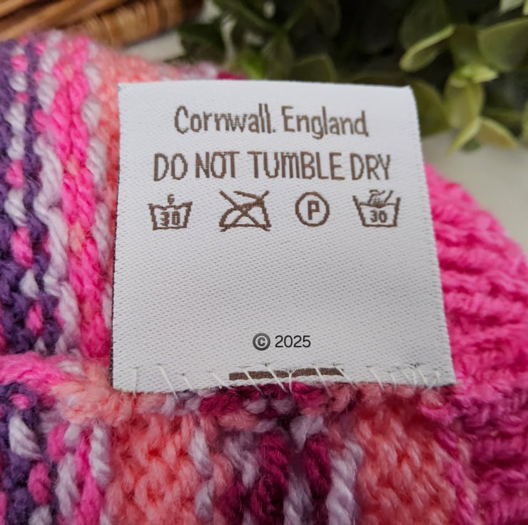 Baby knitwear is designed and hand crafted by Demelza Designs in Cornwall meeting UK baby safety standards, Only branded premuim acylic, acrylic/natural fibre blends or pure natural fibre yarns are used in baby knitwear which conforms to BS984/76 standards.