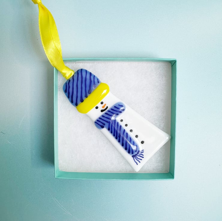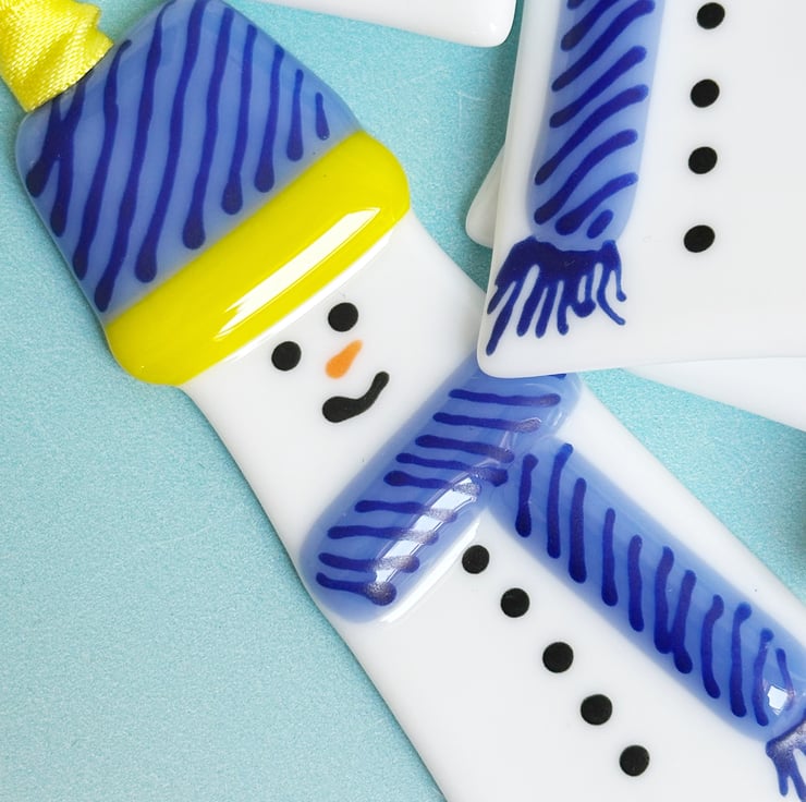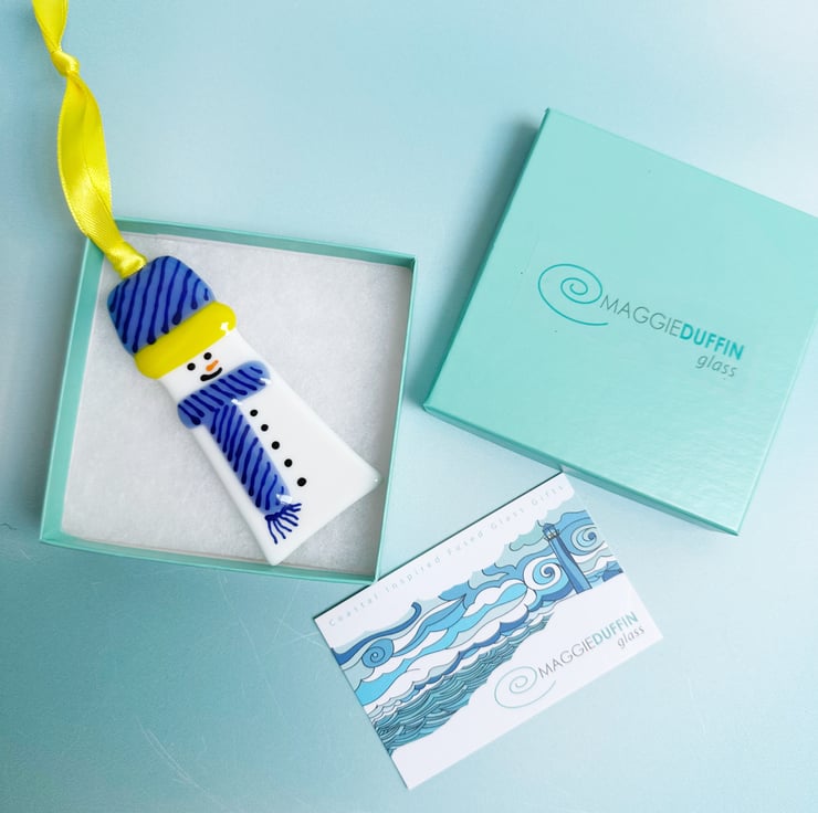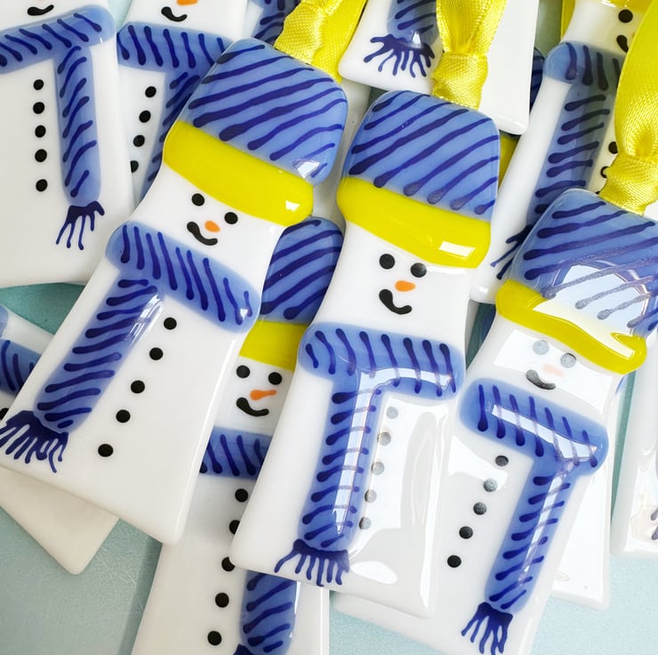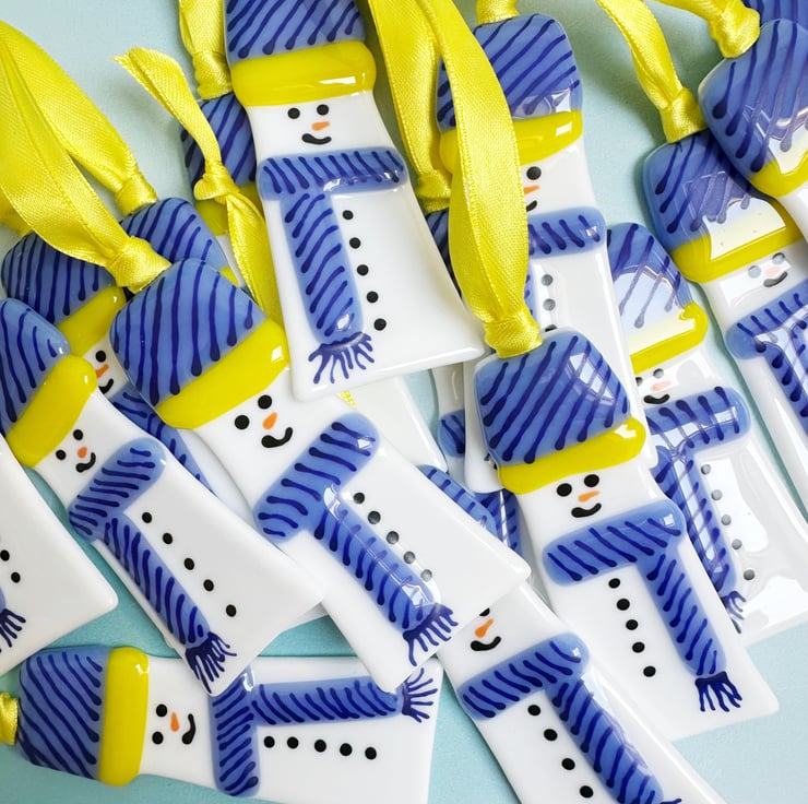 Each part of the snowman has been carefully cut by hand, assembled and fired in the kiln.