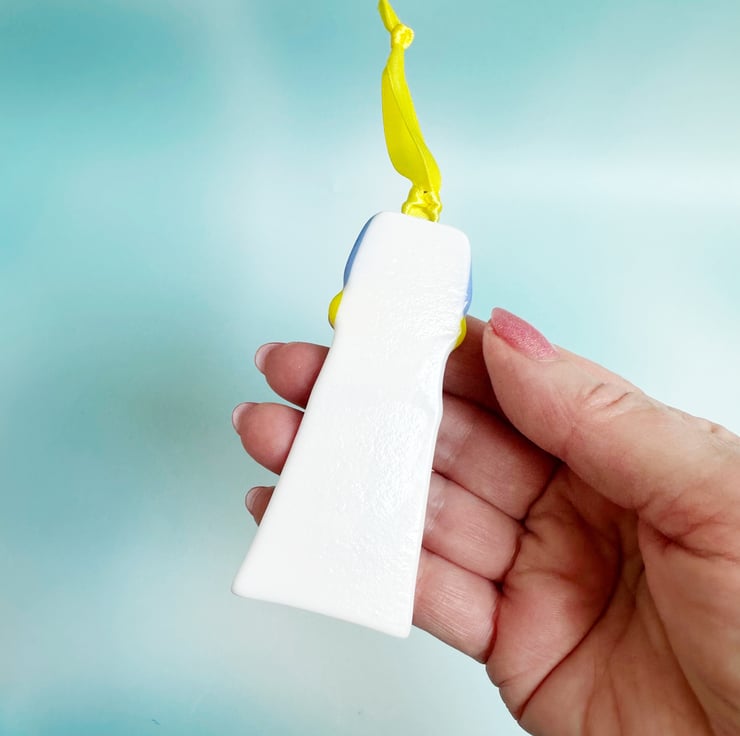 A yellow satin ribbon has been attached for hanging and each comes in its own luxury box, perfect for gifting.