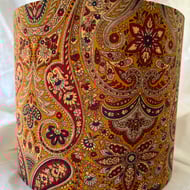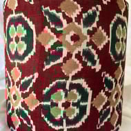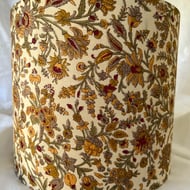 Silk lampshade in soft green, peach,and duck egg blue tones with specks of silver sequins. Lined with peach silk. There is only one hand rolled cylindrical shade available. It measures 16.5cmH x 20cmD
