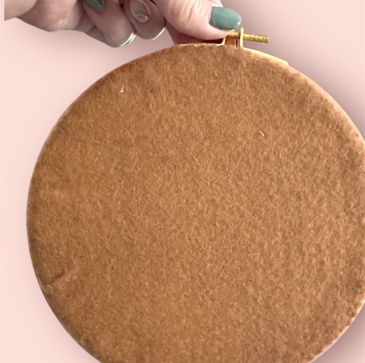 It has been hand embroidered on a natural cotton canvas fabric using DMC quality colourfast cotton threads and has a circle in two of the colours used to frame the image.