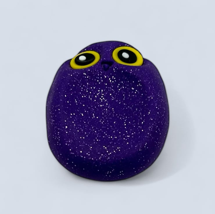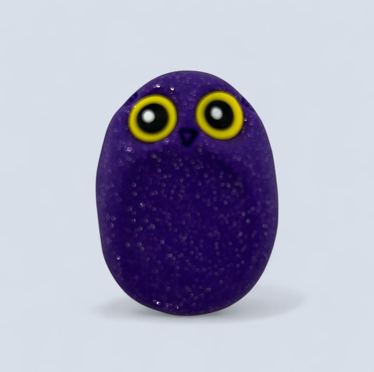 This adorable little glittery purple owl is handcrafted from polymer clay using my unique design. It makes a lovely, thoughtful gift for anyone who could use a little comfort or as a self-care gift for yourself. It features a smooth indent on its tummy, allowing it to fit comfortably in your hand with your thumb resting in the indent. This owl can be a grounding tool when you’re anxious or overwhelmed. Focusing on the sensation of your thumb on its smooth tummy and taking deep breaths can help comfort you and bring you back to the present moment.
