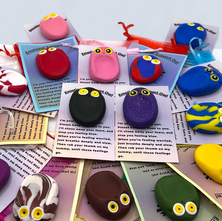 As a someone who is neurodivergent I self soothe by stimming when I get overstimulated, anxious or am to trying to concentrate. I wanted something discrete that I could keep with me at all times and I love owls, so my Emotional Support Owl was born.