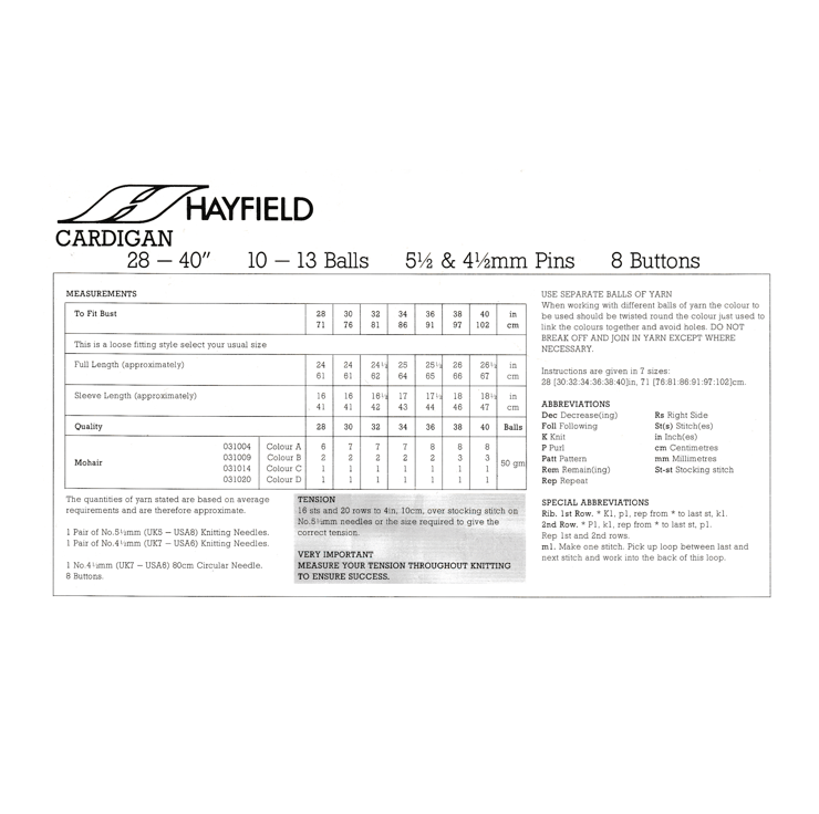 This hand knit PATTERN is for a ladies cardigan. To fit bust: 71 to 102 cm or 28 to 40 inches. It is knitted in mohair yarn using 4.5 mm and 5.5 mm knitting needles.
