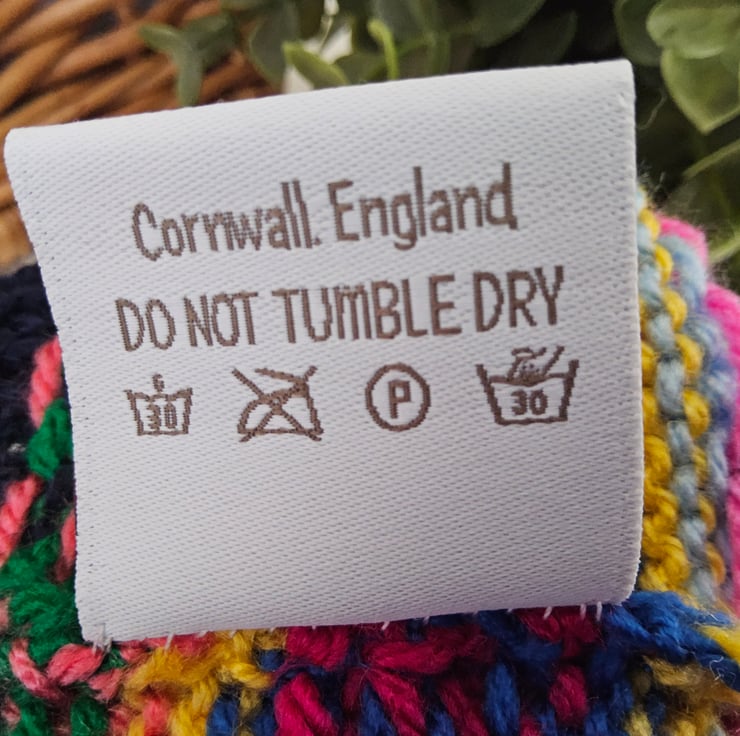 Baby knitwear is designed and hand crafted by Demelza Designs in Cornwall meeting UK baby safety standards, Only branded premuim acylic, acrylic/natural fibre blends or pure natural fibre yarns are used in baby knitwear which conforms to BS984/76 standards.