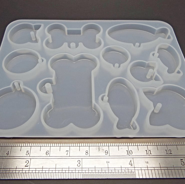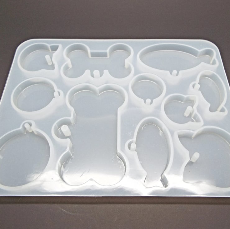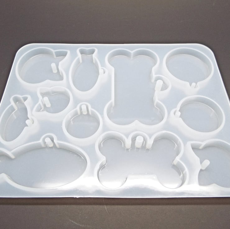11Pc Cat Mold with Cat Faces, Fish, Bones, Round Tag Shapes for Use with Epoxy Resin, UV Resin & Polymer Clay.