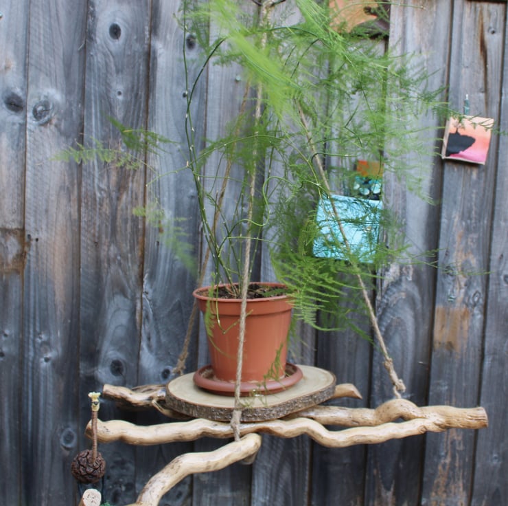 My walks in nature always end with me picking up something - a pebble, a pine cone, a twig that fell to the ground, things that many of us would not notice! And so it happened with these naturally curved branches! I left them for a year to dry and then started processing them to a finished look! In them I saw how they could become a hanging flower stand for any flower placed on it. Suitable for a yard and a balcony! Just in case, if it is outside, it should be in a dry place, because the handles are made of natural twine!