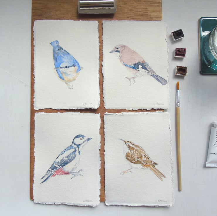 With these paintings I wanted to attempt to capture the character of each bird and some of the joy I get from observing their behaviour. I hope these paintings will bring a little piece of that joy into your home.