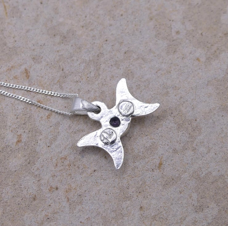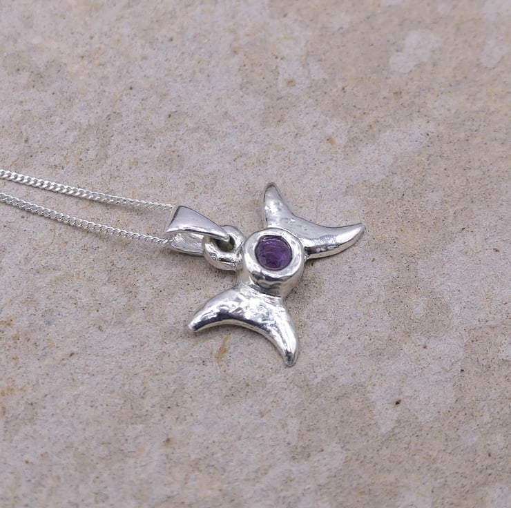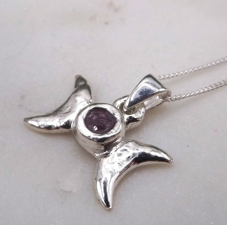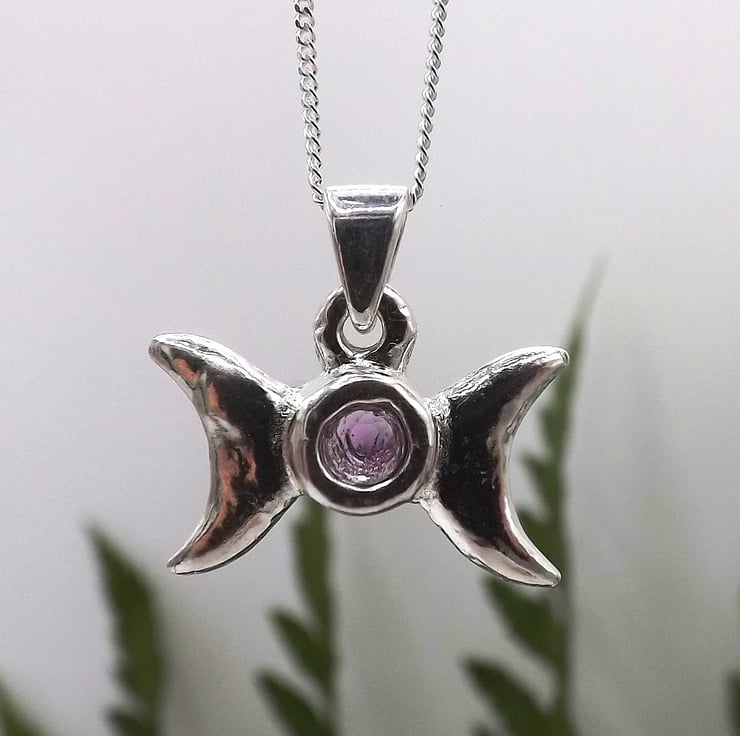 Recycled Sterling Silver Triple Moon with African Amethyst Pendant Necklace.