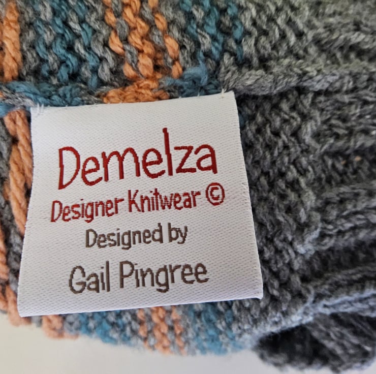 The luxury soft damask garment label has been hand sewn to the inside of the hat seem with the care instructions woven within it for lasting reference. A matching Demelza Designs garment swing tag is attached for a totally professional finish one expects from quality designer garments.