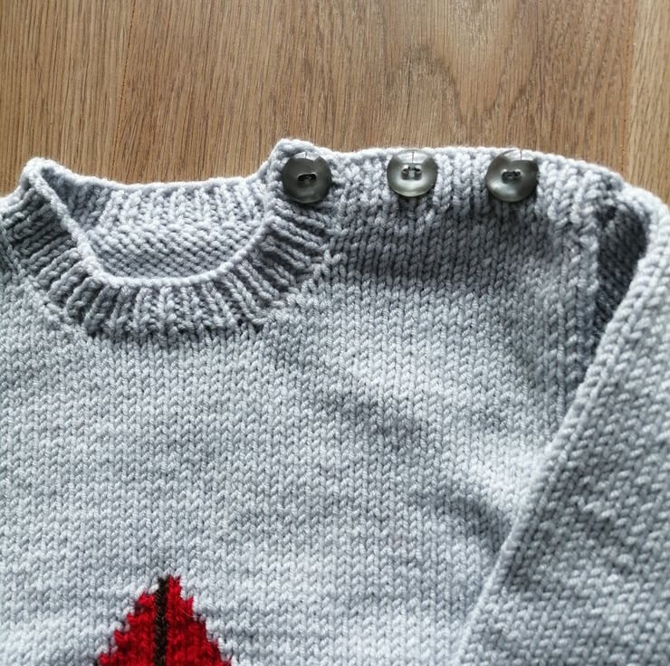 The jumper has 3 buttons on the shoulder for ease of dressing.