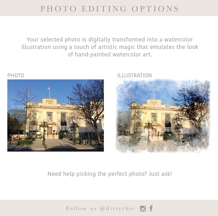 3. We’ll turn your photo into a one-of-a-kind digital watercolour illustration and send you a proof.