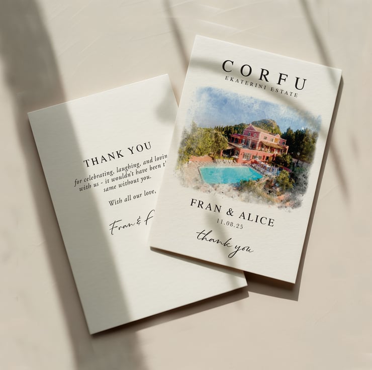 Every couple’s wedding day has its own magic - the laughter, the little details, and that one special place where it all happened. We wanted to bottle up a bit of that magic and give couples a way to share it with their guests. By turning a wedding venue into a beautiful illustration, each thank you card becomes more than stationery. It’s a story, a memory, and a keepsake all in one.