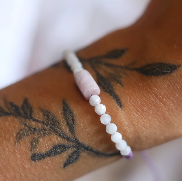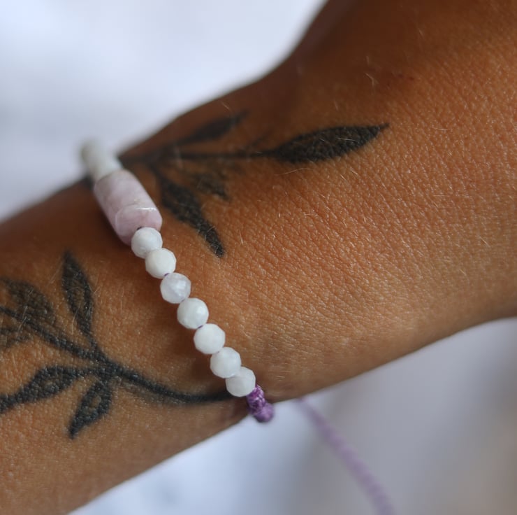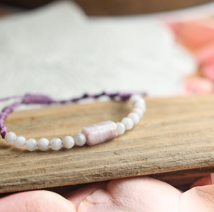 Adjustable bracelet with Kunzite and Moonstone in purple