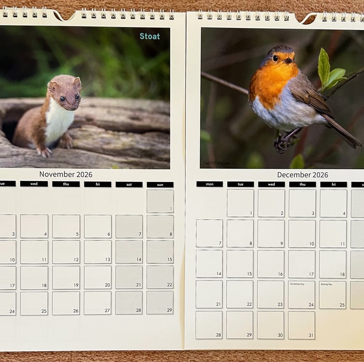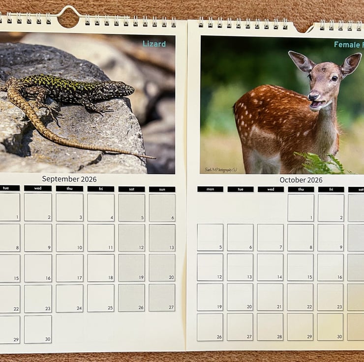 Ethically made A4 Wildlife Calendar featuring all my own photos.