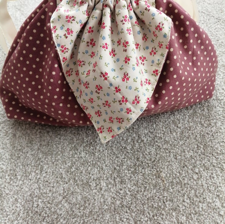 Outer fabric is a dark dusky pink and there is a pretty floral coordinating second fabric.