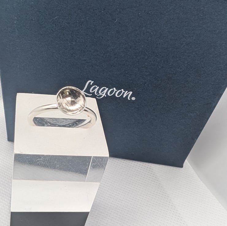 this simple ring is part of my 'orbital' collection. It can be worn on its own or with some thin stacking rings to make a chunky combo. The small dome of silver gives a contemporary look. Size 0