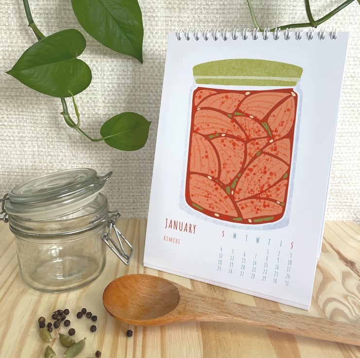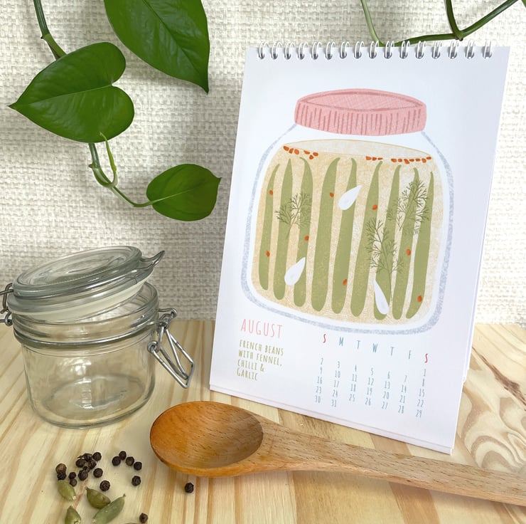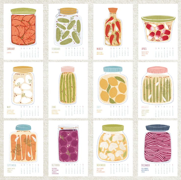 A unique desk calendar for 2026 featuring 12 Pickles and Preserves illustrations.