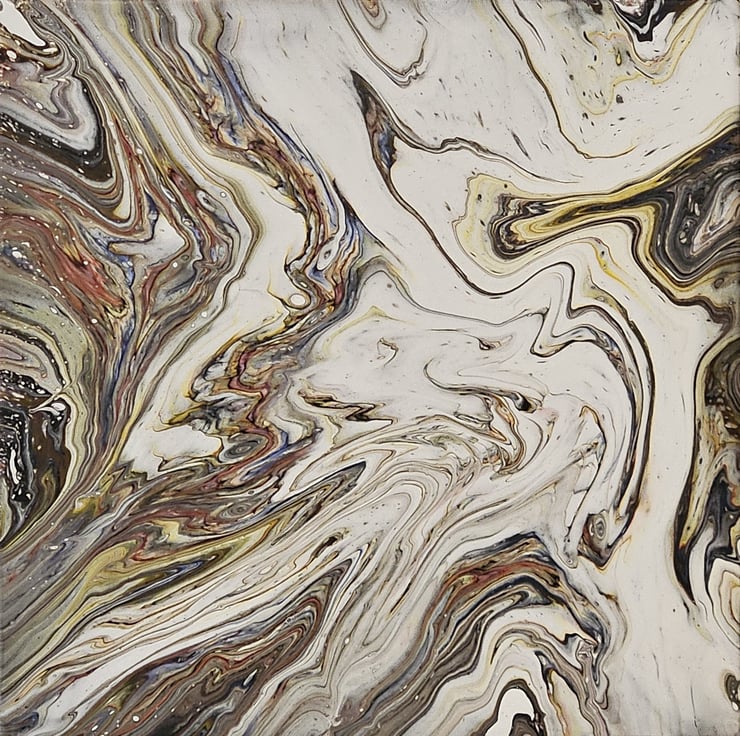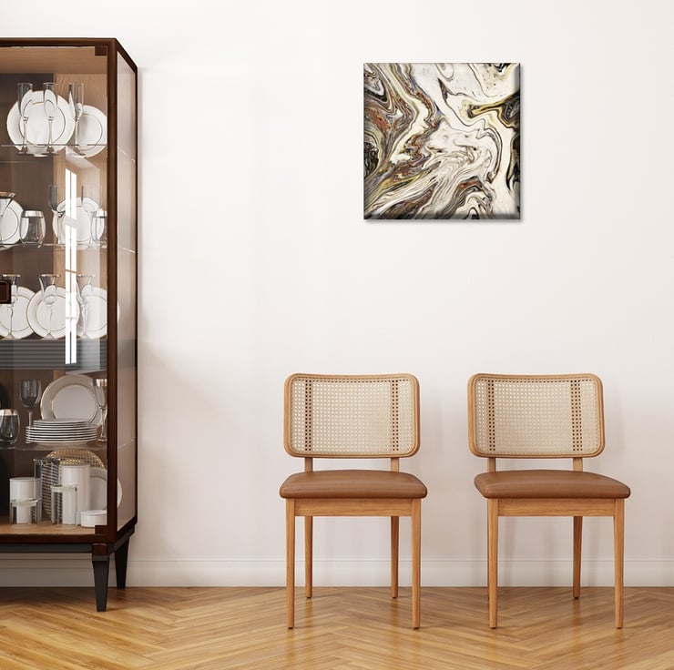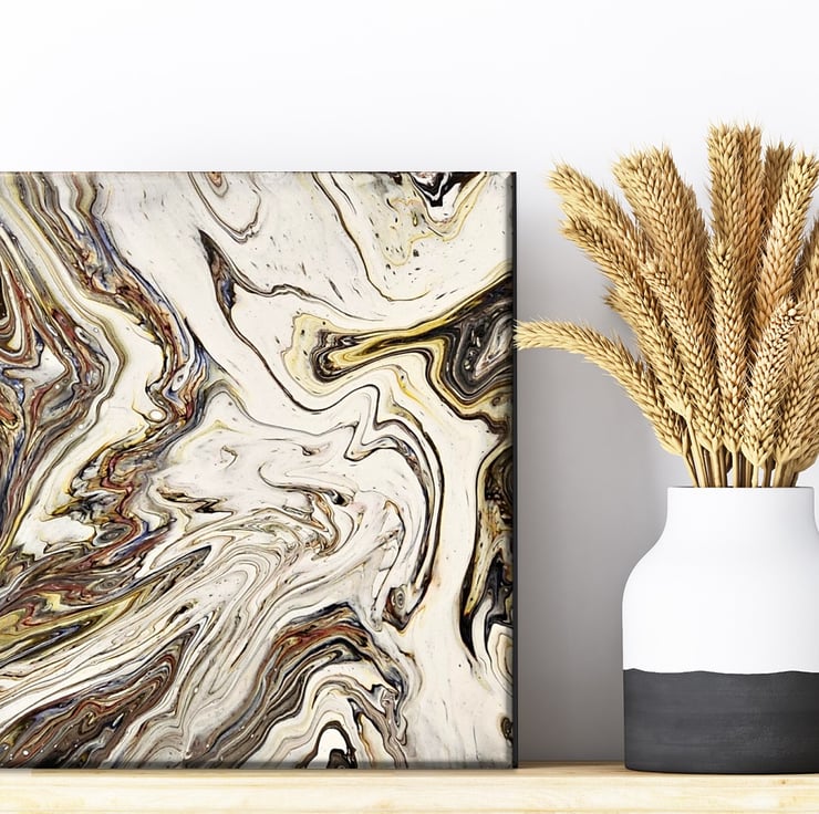 One of my first pour paintings and a very attractive piece. With natural 'earthy' colours and a simple pour pattern with no swiping or additional techniques, this resulted in piece that doesn't dominate, but fits in with pretty much any room's palette.