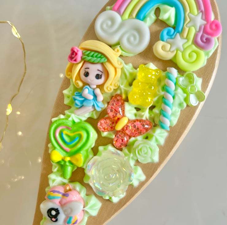 Green decoden glue, princess, rainbow, unicorn and butterfly.