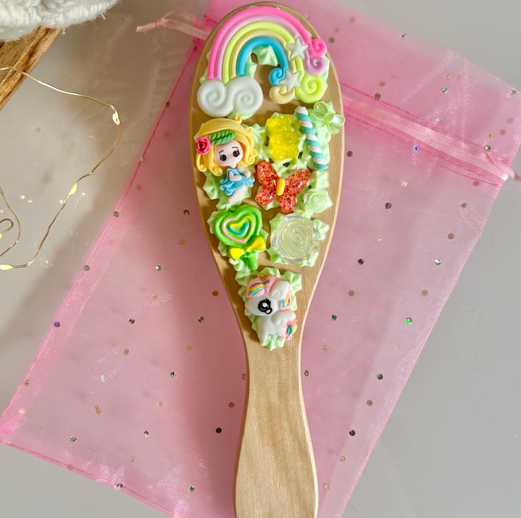 Each hairbrush will be packaged with a glittery organza gift bag.
