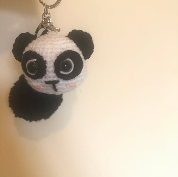 This charming crochet panda keychain is perfect for animal and craft lovers. With big, expressive eyes, fluffy ears, and an extra-soft black pompom, it adds a fun and charismatic touch to your keys, purses, or backpacks. Handmade using the amigurumi technique, each piece is unique, making it a special and unique gift.