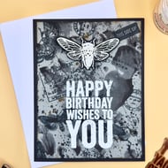 - Design: Hand assembled layered butterfly with die-cut accents, bold printed text
