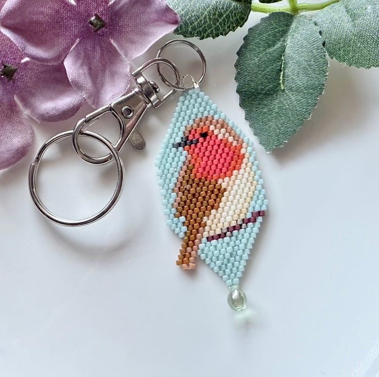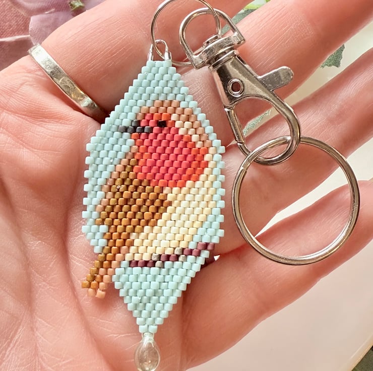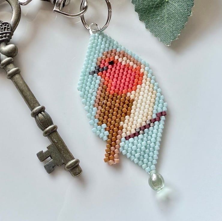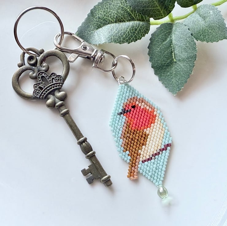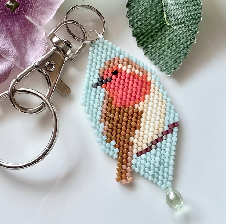This lovely little robin has been handmade with tiny Miyuki glass beads that are hand-woven together in an assortment of colours to make the image of the robin.