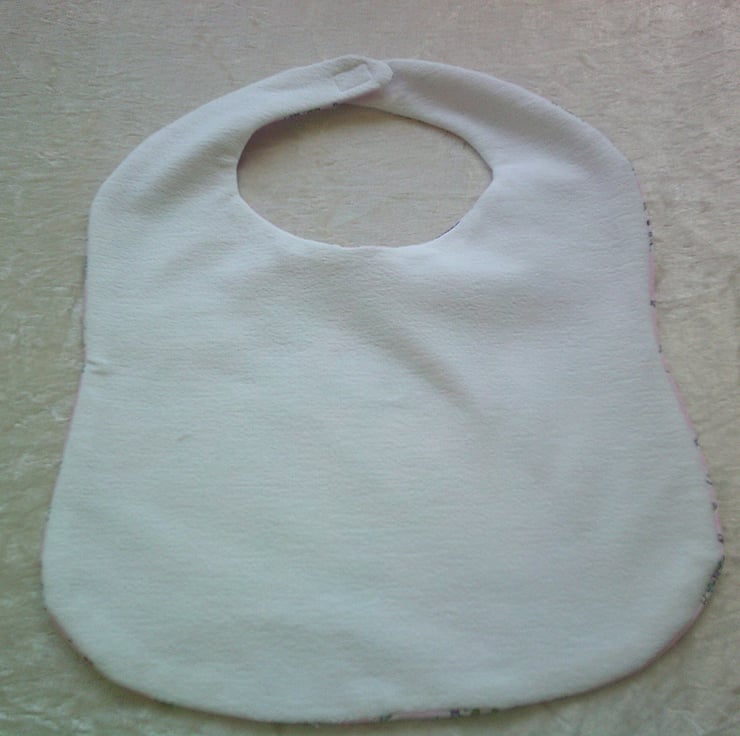 The bib measures approximately 12 inches (30 cm) from the back of the neck, and approximately 9 inches (23 cm) from the front opening to the bottom.