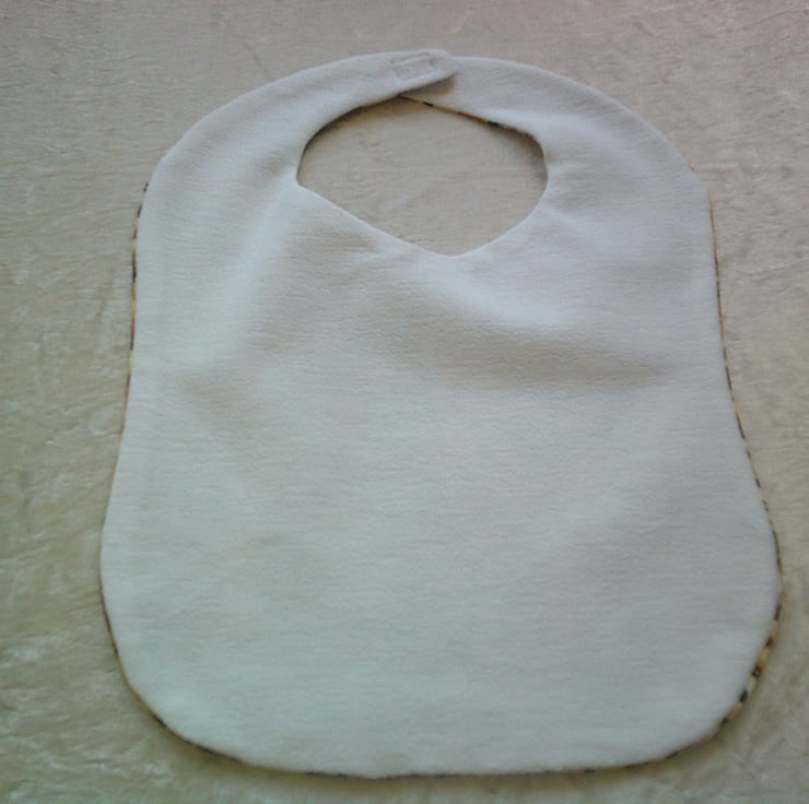 The bib measures approximately 12 inches (30 cm) from the back of the neck, and approximately 9 inches (23 cm) from the front opening to the bottom.