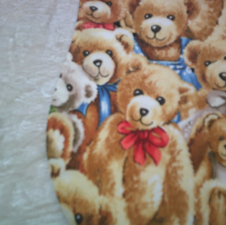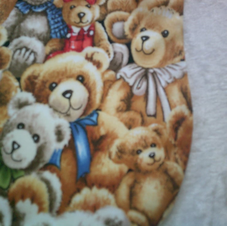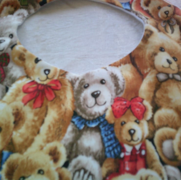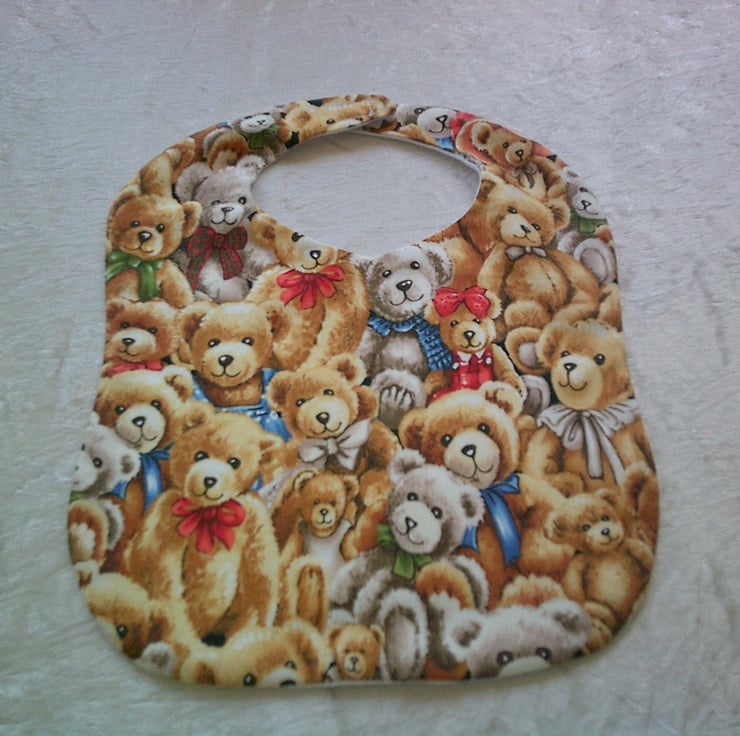 The design features an all over design of teddy bears. The neck fastening is Velcro so it is easy to put on and take off before and after feeding baby.