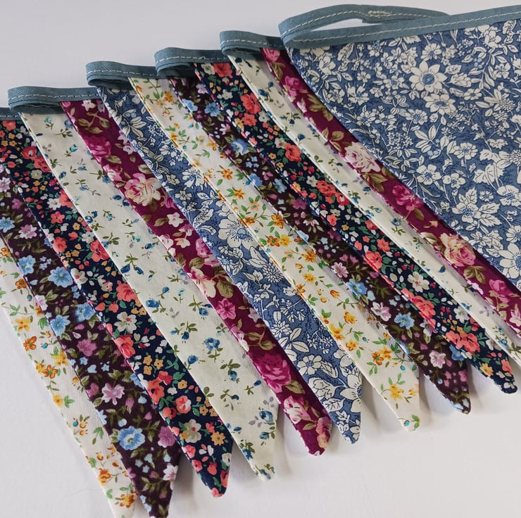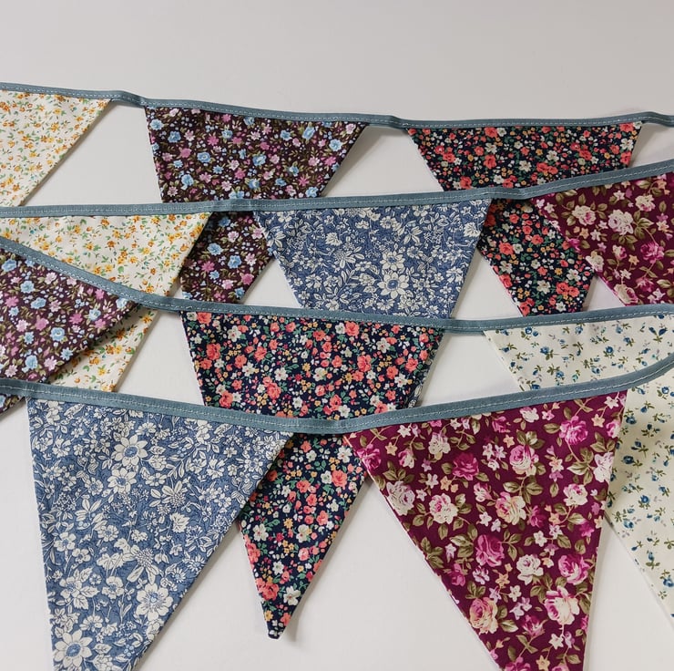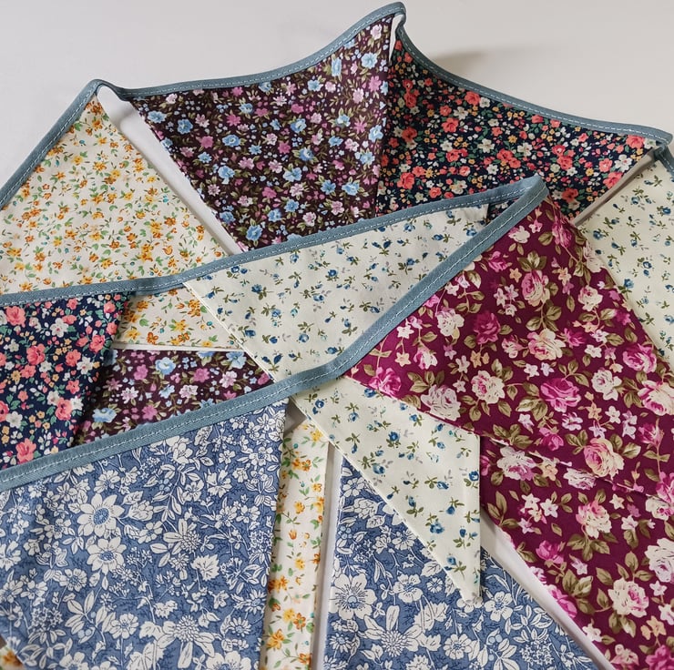 Ditsy Floral Vintage Style Fabric Bunting made on my 108 year old sewing machine